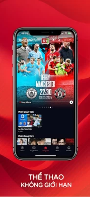 - Trực tiếp trận đấu, nhận định của chuyên gia, nhà báo, bình luận viên nổi tiếng trước trận đấu, highlights, tổng hợp vòng đấu bóng đá, thể thao. Khán giả có thể xem trực tiếp và tham gia chương trình truyền hình tương tác trực tiếp ngay trong trận đấu, dự đoán tỷ số, chỉ cần tham gia là có quà.