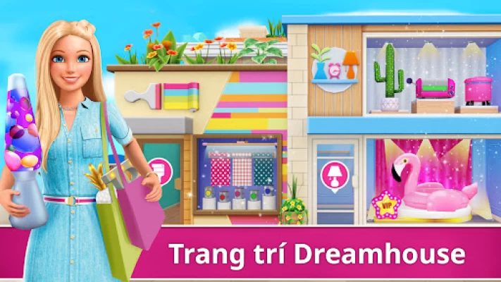 Tham gia nhiều hoạt động vui ở Dreamhouse: nướng bánh, nhảy múa hoặc tiệc bể bơi hoành tráng! Ra ngoài khám phá Malibu trên xe mui trần màu hồng của tớ để thêm nhiều hoạt động vui