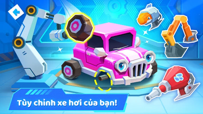 Đã đến lúc sử dụng các đạo cụ mà chúng ta thu thập được! Đi đến nhà để xe và bắt đầu chế tạo xe! Bạn thích kiểu dáng thân xe và vỏ xe nào? Tùy bạn lựa chọn! Sử dụng sơn xịt, miếng dán? Chỉ cần bạn muốn, đều có thể làm được ! Wow, chiếc xe mà bạn thiết kế trông thật tuyệt!