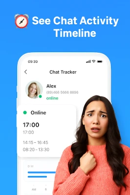 Tracking goes beyond real-time status. LastSeenly stores past activity and provides clear reports. With its chat tracker function, you can discover at what times people are most active and better understand your own usage patterns.