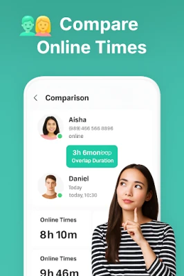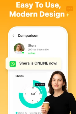 Designed with a Check Chat approach, the app makes it easy to see the online and offline status of multiple contacts. This allows you to evaluate communication habits and compare daily or weekly statistics.