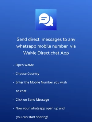 Features: - Quick way to send whatsapp message to anyone without storing their numbers - Get rid of unnecessary contacts in your phone - Copy & Paste feature - Easy way to choose different countries - Easy way to share with friends and families