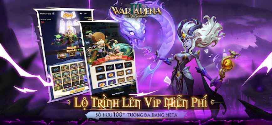 War 3 Arena - tựa game chiến thuật 5v5 hot nhất 2025. Thỏa sức chiến đấu, nuôi tướng chủ lực để ẵm Penta Kill đỉnh cao. Cùng hệ thống đấu Rank chuẩn MOBA và hơn 100 vị tướng trong vũ trụ DOTA và Liên Minh Huyền Thoại đa dạng, đây chính là sân chơi lý tưởng để bạn khẳng định tài năng chiến thuật của mình.