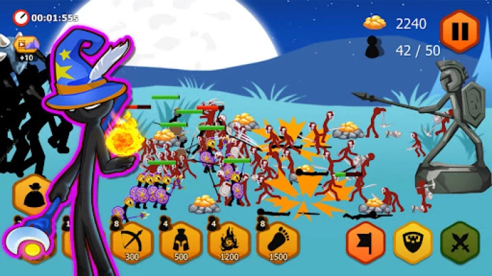 Fun and addictive stickman war fight mobile game that features elements to hit strategy gameplay.