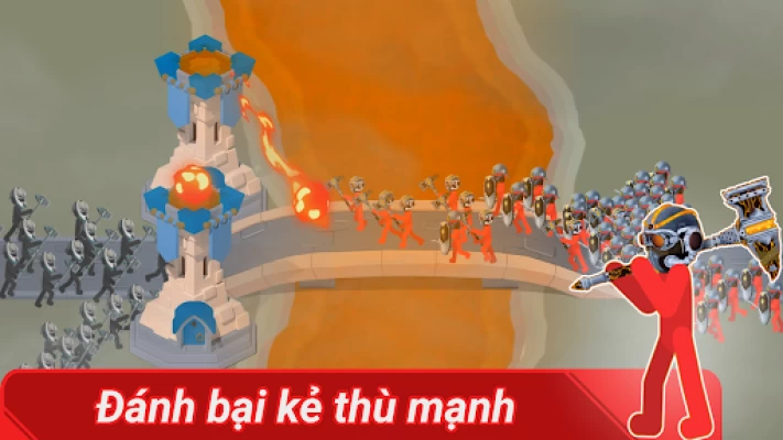 Build lines of warriors and attack the Red Empire’s soldiers and castle in an increasingly exciting stick clash. Conquer the towers with your powerful army and a proper tower strategy. Manage your warriors, stick war economy, and use them wisely depending on the strength of the enemies. Showcase calmness and make the right defending and attacking decisions to progress and complete your goals for freedom in this stickman war.