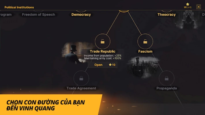 - Chọn một trong nửa tá chế độ chính trị và đưa ra các quyết định chính trị có thể thay đổi tiến trình lịch sử