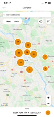 W zakładce EKOpunkty znajdziesz adresy aptek, w których możesz oddać termometry rtęciowe oraz przeterminowane leki. Na mapie możesz także sprawdzić adresy stacjonarnych i mobilnych Punktów Selektywnego Zbierania Odpadów Komunalnych ( PSZOK I MPSZOK)