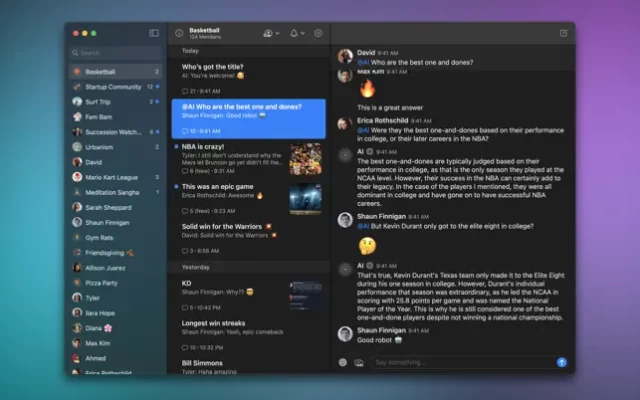 • Effortless threading: In a traditional group chat you can only talk about one thing at a time. If a conversation is noisy, the only option is to mute the entire group. On Wavelength, you can mute a thread about a basketball game you’re not interested in, while staying looped in on another thread about dinner plans for tonight. It’s simple and intuitive.