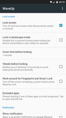 WaveUp là một ứng dụng đánh thức điện thoại của bạn - bật màn hình lên - khi bạn vẫy tay trên cảm biến tiệm cận.