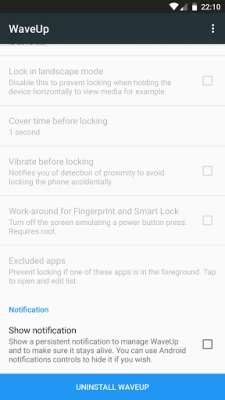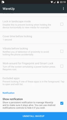 Ứng dụng này sử dụng quyền Quản trị thiết bị. Vì vậy bạn không thể gỡ cài đặt WaveUp một cách 'bình thường'.