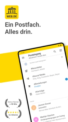→ Installieren Sie jetzt die WEB.DE Mail App und registrieren Sie kostenlos Ihre E-Mail-Adresse.