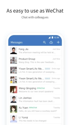 WeCom is a business communication and office collaboration tool developed by Tencent WeChat Team. WeCom provides the familiar communication experience as WeChat and connects with WeChat in an all-round manner. It also offers productivity tools such as Event, Meeting, WeDoc and WeDrive, and flexible OA apps for effective business communication and management.