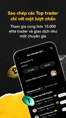 - Sao chép top trader ngay lập tức với bảng xếp hạng thời gian thực minh bạch