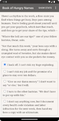 "Werewolf: The Apocalypse — The Book of Hungry Names" is an interactive novel by Kyle Marquis set in the World of Darkness. It's entirely text-based—1.6 million words, without graphics or sound effects—and fueled by the vast, unstoppable power of your imagination.