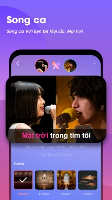 -Song ca cùng bạn bè và nghệ sĩ yêu thích. WeSing hỗ trợ song ca cùng người nổi tiếng!Bạn có thể hát “Song Ca” cùng người nổi tiếng hoặc bạn bè dù ở khoảng cách nào đi nữa!