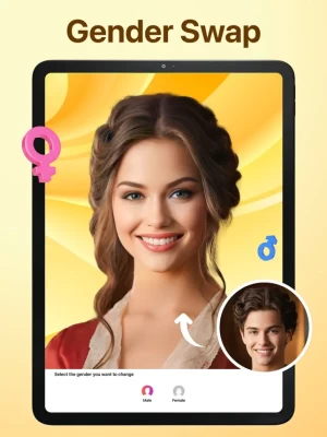 Find out your look in the opposite sex! It is hilarious to see yourself as a man or a woman. Switch to a beautiful lady with long hair or a man with a cool beard in seconds! Take a photo or upload it, machine learning does all the work for you.