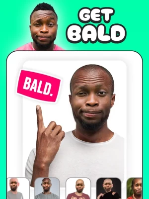 Remove that head of hair instantly. This hilarious filter will place your face onto a bald head! You can even flip through our different overlays to find the perfect pic.