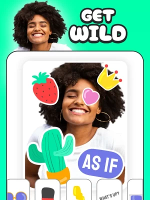 Choose from a plethora of free stickers to spice up your photo. Add some quirky fun with word bubbles, beards, glasses, hats, and many more, all created uniquely for the What Will I Look Like app.