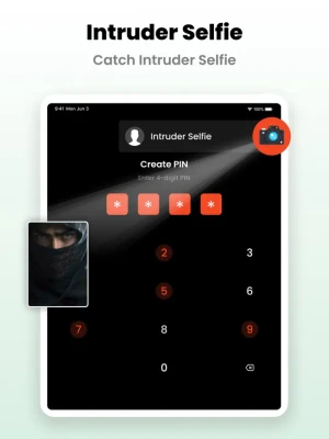 - intruder selfie, hack alert, wrong password selfie, app lock security