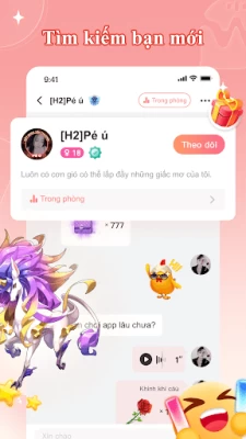 Có nhiều trò chơi miễn phí như LUDO… đang chờ đợi bạn. Bạn có thể tìm người cùng chơi trong phòng voice ngay lập tức và chiêm ngưỡng các Hiệu ứng quà tặng đẹp mắt. Ngoài ra, bạn cũng có thể chọn tham gia các trò chơi để có cơ hội nhận thêm nhiều xu vàng chiến thắng