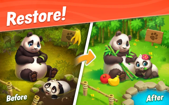 ● Enjoy your favorite gameplay: beat match-3 levels to restore the zoo!