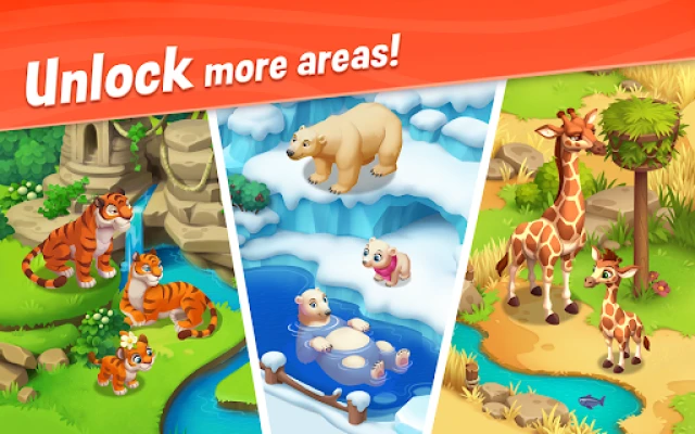 ● Unlock more areas to welcome new animals from different habitats