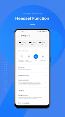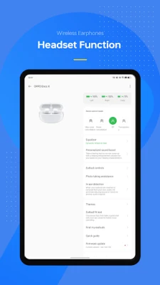 "Wireless Earphones" is a system app that allows you to manage your OPPO and OnePlus earbuds. After connecting your earbuds, you can view the battery levels of both earbuds and the charging case in real time. This app also offers functions such as sound effect adjustment, gesture customization, and firmware OTA updates.
