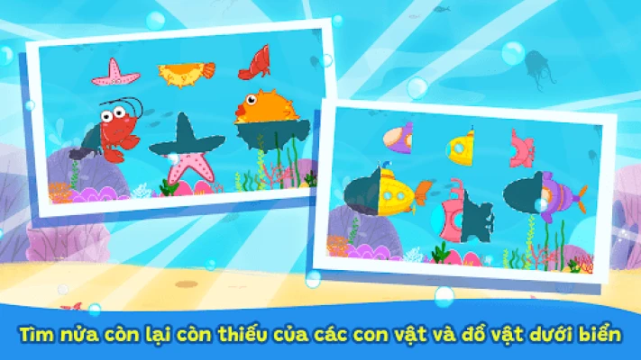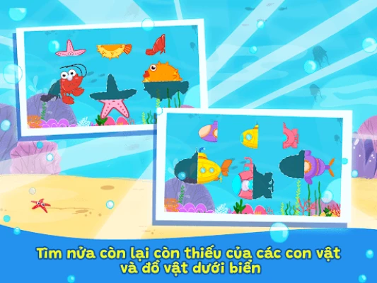 3. Nhận biệt màu sắc, họa tiết và nửa còn thiếu của các động vật biển, tàu ngầm