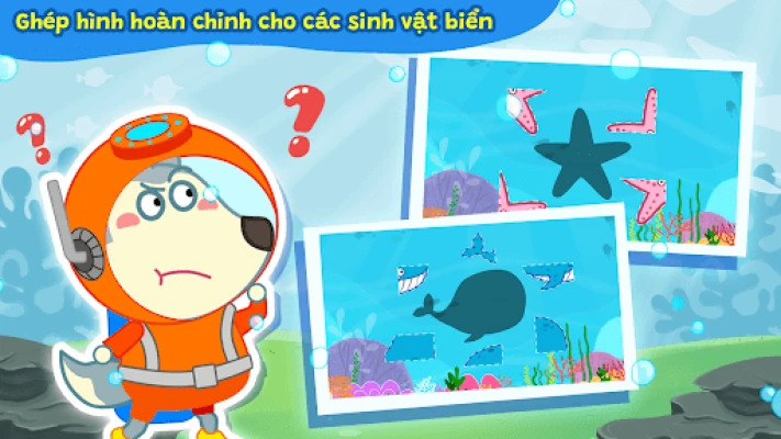 🐠 Với Wolfoo Khám Phá Đại Dương, bé sẽ được trải nghiệm những trò chơi học tập giáo dục vui nhộn và khám phá đại dương với tàu ngầm, rương kho báu, lâu đài cát và nhiều loại sinh vật biển như cá, rùa bạch tuộc, san hô... Đồ họa sống động và rực rỡ sẽ giúp các bé giải trí và làm cho việc học tập trở nên thú vị hơn. Wolfoo Khám Phá Đại Dương giúp phát triển khả năng sáng tạo, tập trung, phối hợp tay mắt, nhận thức cho trẻ em. Các mảnh ghép vui nhộn đầy màu sắc có thể dễ dàng ghép lại với nhau để tạo thành các cảnh và động vật biển dễ thương.