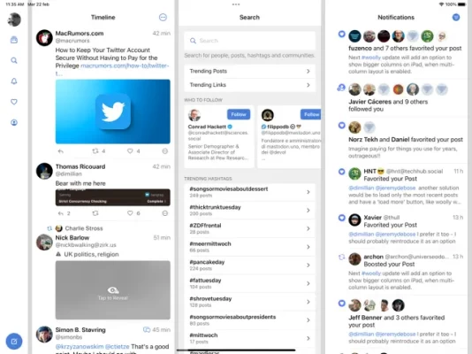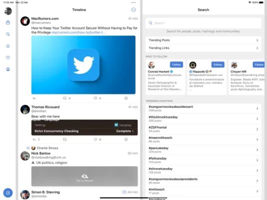 * Support for all Mastodon features: content warnings, polls, bookmarks, followed hashtags, trending posts/tags and links, custom emojis