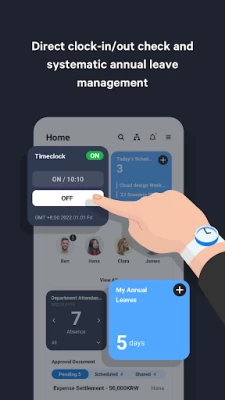- You can receive notifications about approvals and task processing through Message, and create absence schedules and share them on Calendar.