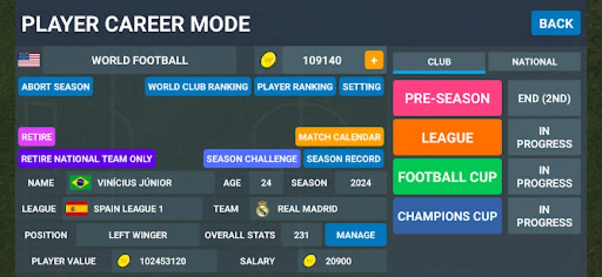 In Club Manager mode, you can select a team to participate in various competitions and collect trophies.