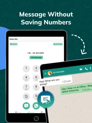 Direct Message in WA: Send messages directly to any phone number without saving it to your contacts. Perfect for quick interactions. Direct message anyone on WhatsApp without saving their contact.