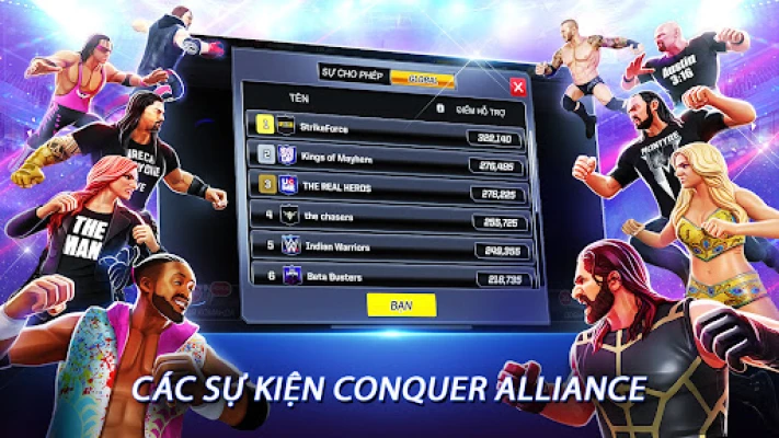 Thu thập, tăng cấp và quản lý các đội SuperStars của bạn một cách khôn ngoan để nhận phần thưởng tổng hợp dựa trên sự liên kết của đội và các mối quan hệ được lấy từ Vũ trụ WWE và Giải vô địch.