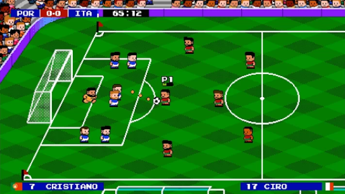 ■ 56 National Teams ■ 40 Achievements ■ 8 Tournaments ■ 4 Grass Stadiums ■ 4 Alternative Stadiums ■ Formations and Substitutions ■ Curve Shots ■ Fouls, Free Kicks and Penalties ■ Simple controls