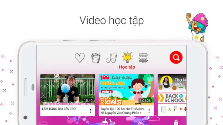 Thư viện của chúng tôi đầy ắp những video phù hợp cho gia đình ở tất cả các chủ đề, khơi dậy từ bên trong con bạn khả năng sáng tạo và tinh thần vui chơi. Tại đây, con bạn có thể tìm thấy mọi thứ, từ chương trình và nhạc mà con yêu thích, đến cách lắp mô hình núi lửa (hoặc cách tạo chất dẻo biến hình) và đủ mọi nội dung khác.