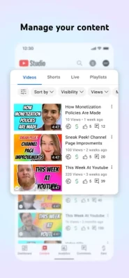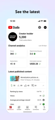 The official YouTube Studio app is the best way for you to understand and connect with the people in your community using the device that you always have with you. Use the app to: