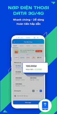 · Dễ dàng nap/mua thẻ điện thoại cho tất cả các nhà mạng Viettel, Mobifone, Vinaphone, Vietnamobile, Gmobile chỉ với vài chạm đơn giản.
