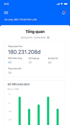 -Quản lý giao dịch: dễ dàng xem lại lịch sử giao dịch theo thời gian, kênh thanh toán, mã giao dịch