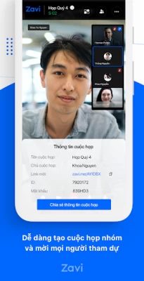 Zavi cung cấp giải pháp giúp tạo và tham dự cuộc họp dễ dàng. Chúng tôi muốn kết nối người dùng, giúp họ giao tiếp và chia sẻ với nhau một cách nhanh chóng, chất lượng cao và được luôn được bảo mật.