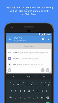 Lệnh: Sử dụng các lệnh / để thực hiện các tác vụ nhanh hơn và dễ hơn, ngay từ cửa sổ chat của bạn.