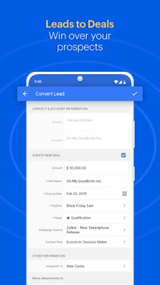Oversee your sales on the move with the Zoho CRM mobile app.