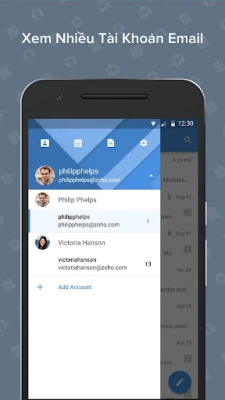 Hỗ trợ nhiều tài khoản - Thêm và chuyển đổi giữa các tài khoản email Zoho khác nhau của bạn. Hoặc xem tất cả một lần thông qua Hộp Thư Đến hợp nhất với thông báo đẩy.