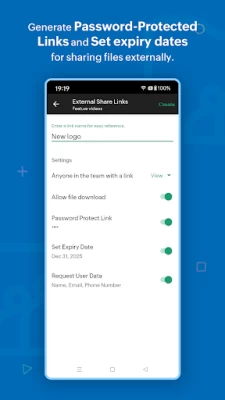 Collaborate with external stakeholders: Create external share links to work with people outside your organization. And you can set a password and an expiry date to the link to ensure secure file access.